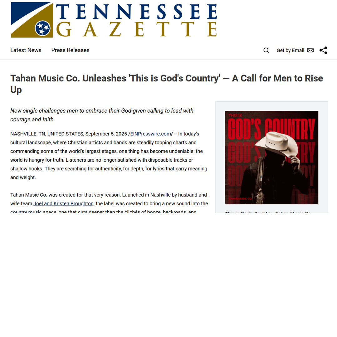 NASHVILLE, TN, UNITED STATES, June 23, 2025 - Some songs make you dance. Some make you cry. And every once in a while, a song comes along that makes you remember what really matters. Luke, the newest release from Tahan Music Co. is one of those rare songs, the kind you'll want to sing with the windows down, then sit in silence afterward just to take it all in before playing it over and over again.